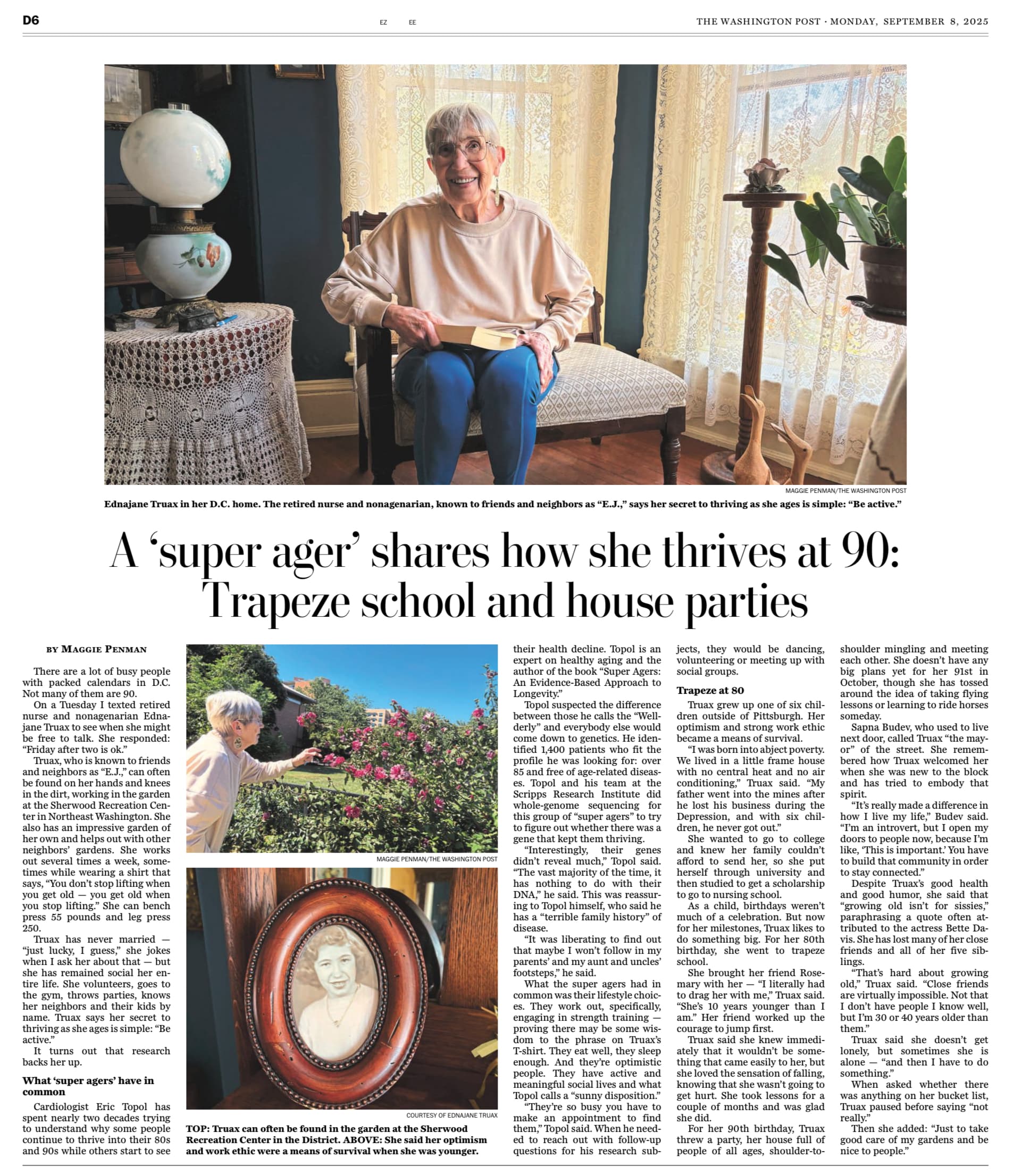 Full story here: A ‘super ager’ shares how she thrives at 90: Trapeze school and house parties (Washington Post)