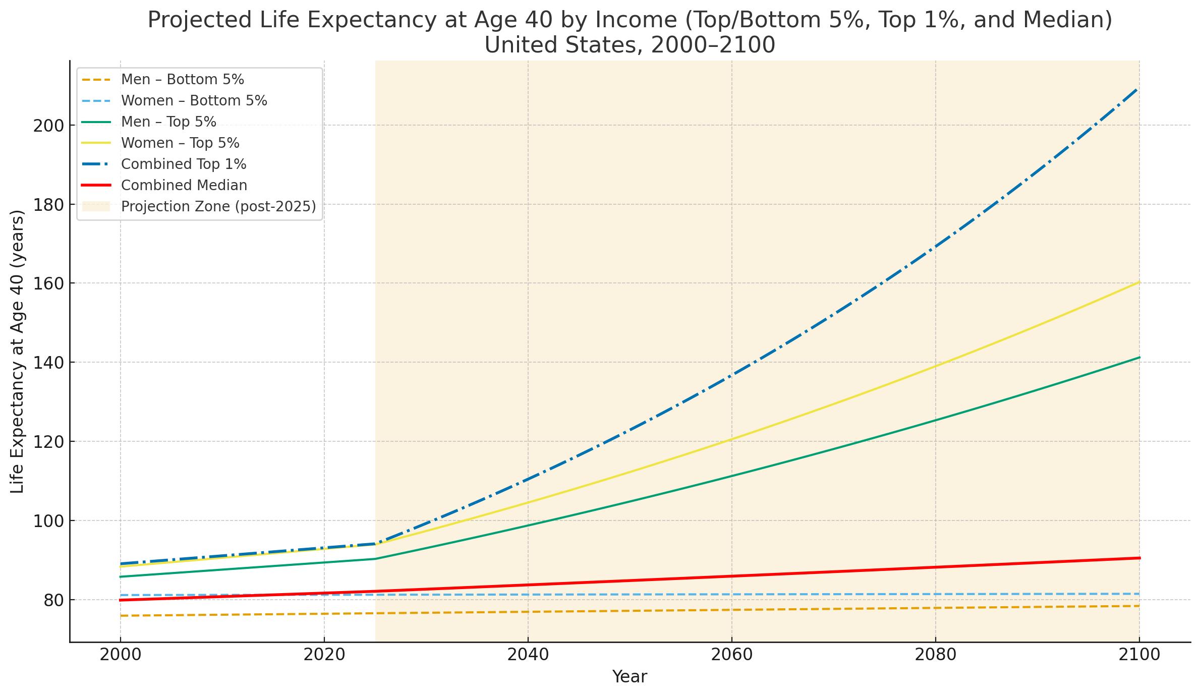 What happens if the wealthiest 1% (and authoritarian leaders) gain life expectancy at dramatically faster rates than the bottom 95%?