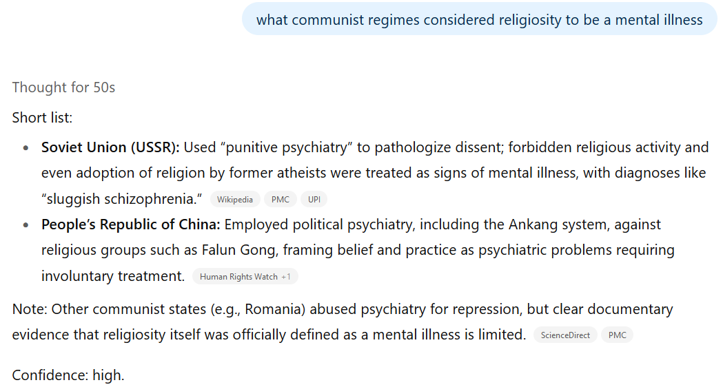 Some people would propose believing in any god to be a metal illness.