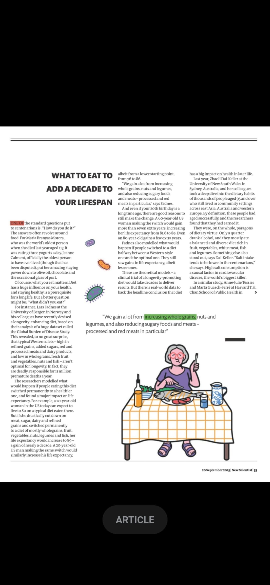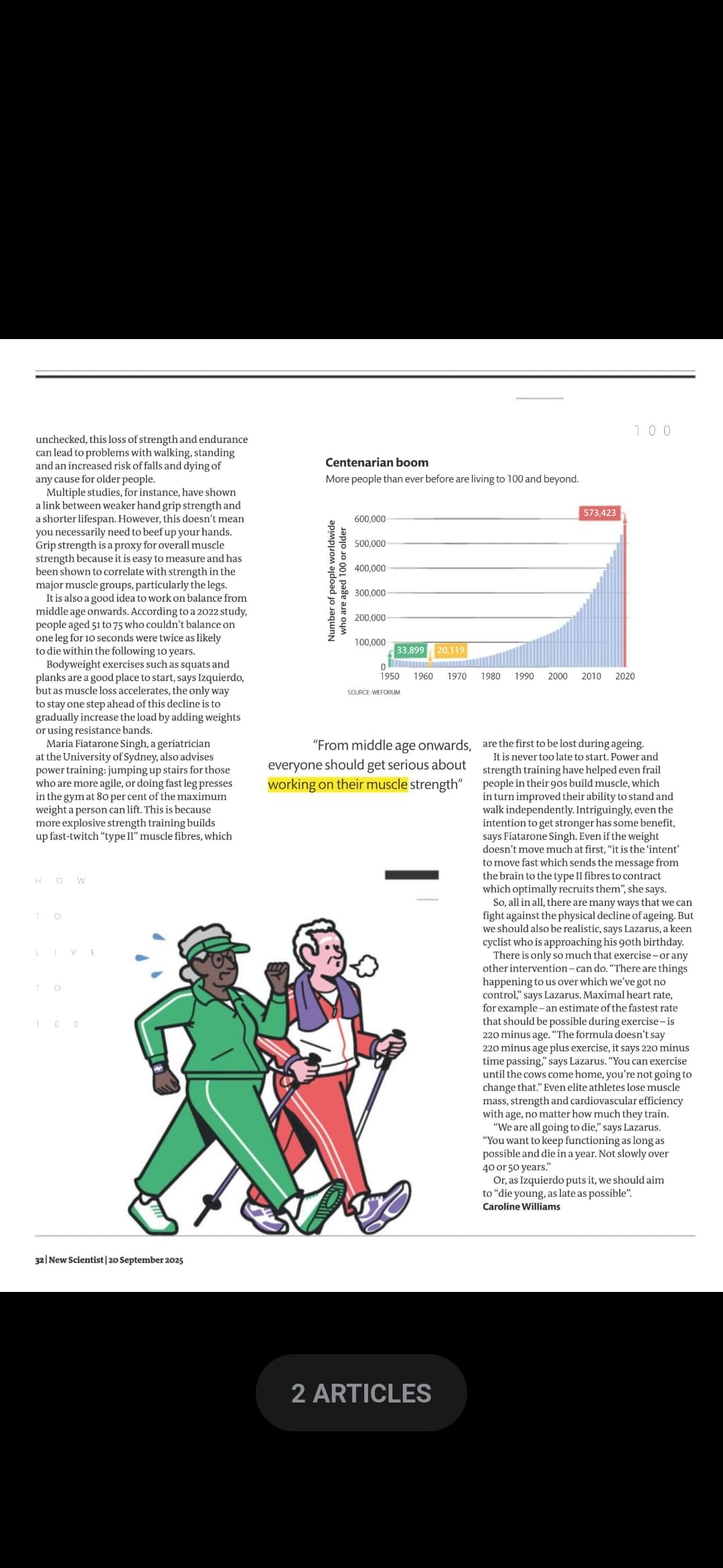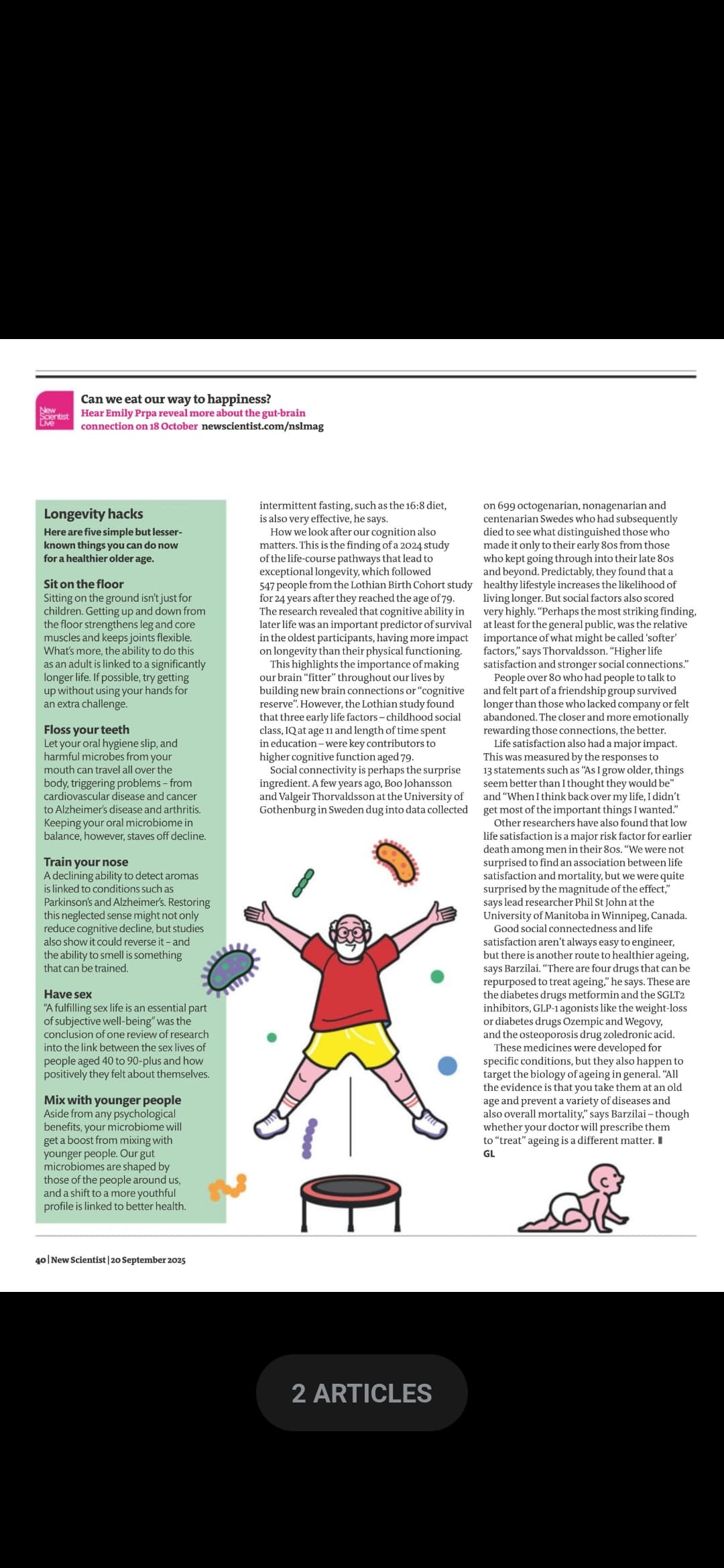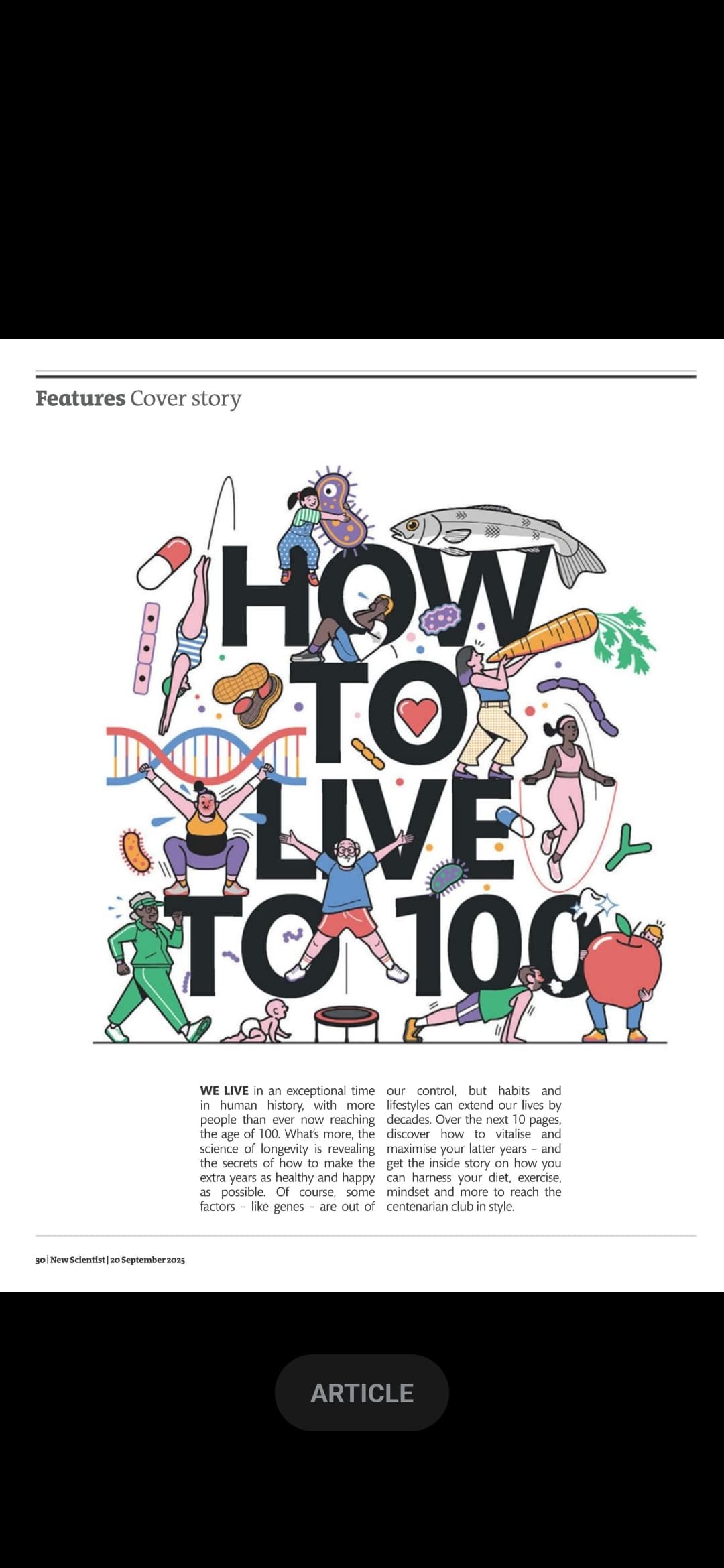 Latest issue of New Scientist with Cover Feature “How to Live to 100”.
