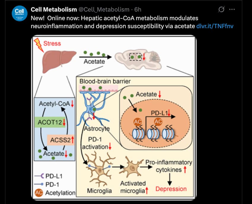 Hepatic acetyl-CoA metabolism modulates neuroinflammation and depression susceptibility via acetate