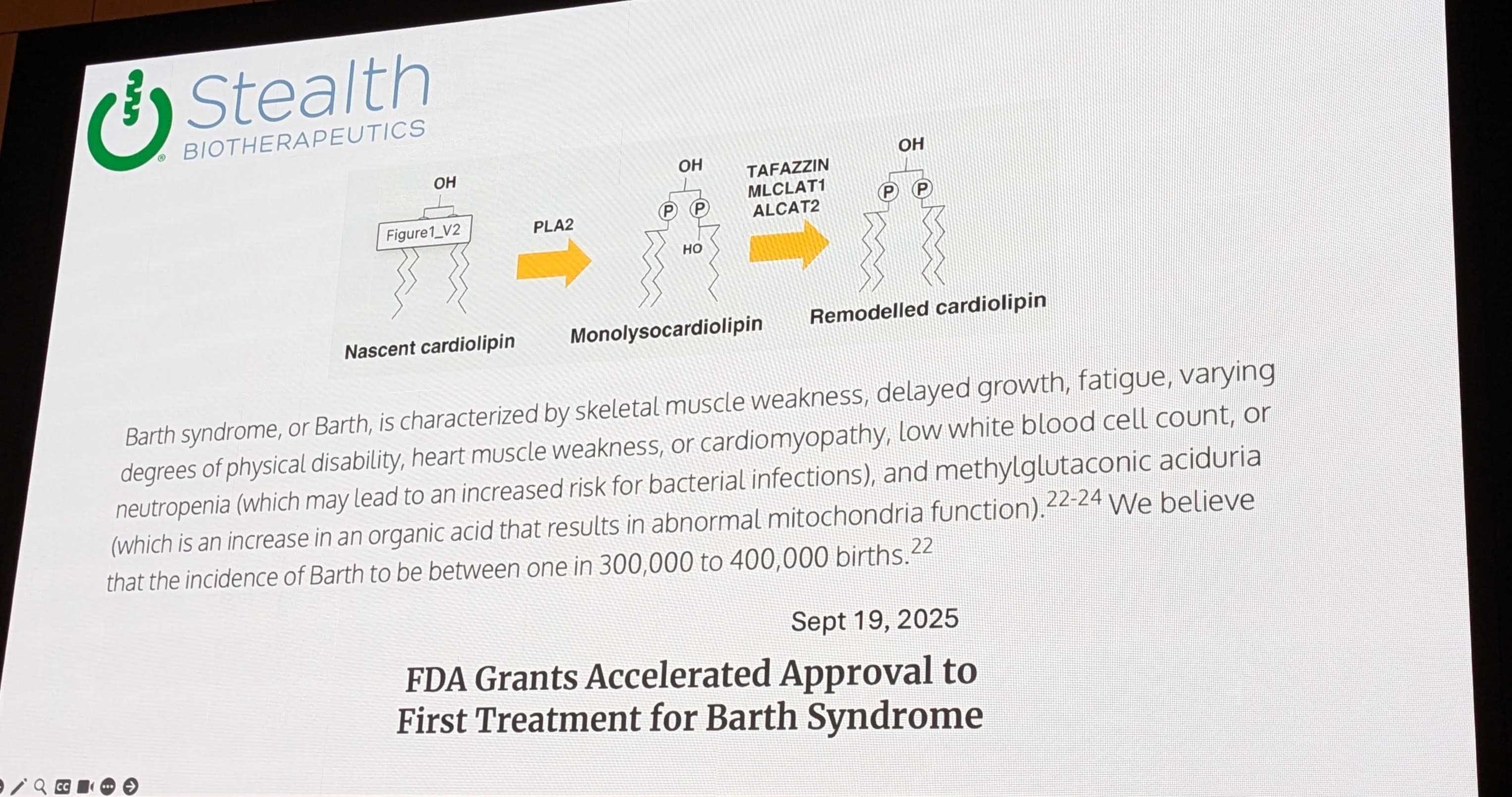 Success in Barth Syndrome: The FDA approval in 2025 for Barth Syndrome is a regulatory success, but it is for an ultra-rare orphan disease where the cardiolipin defect is the genetic cause. This does not automatically guarantee efficacy for general aging or other conditions where mitochondrial dysfunction is secondary.