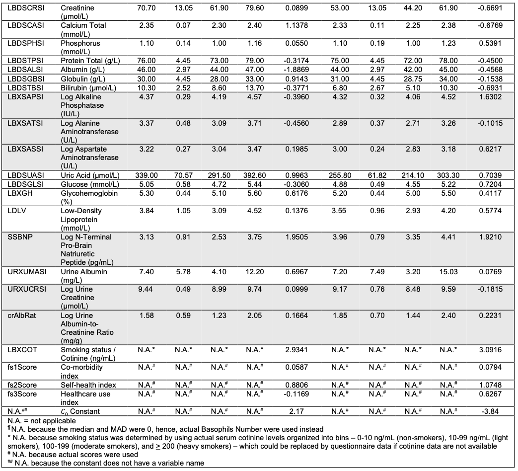 Below is a structured breakdown of the variables you need to compute LinAge2 Biological Age (BA) using the provided R script (linAge2.R), as described in the paper and its Supplementary Table 2 .