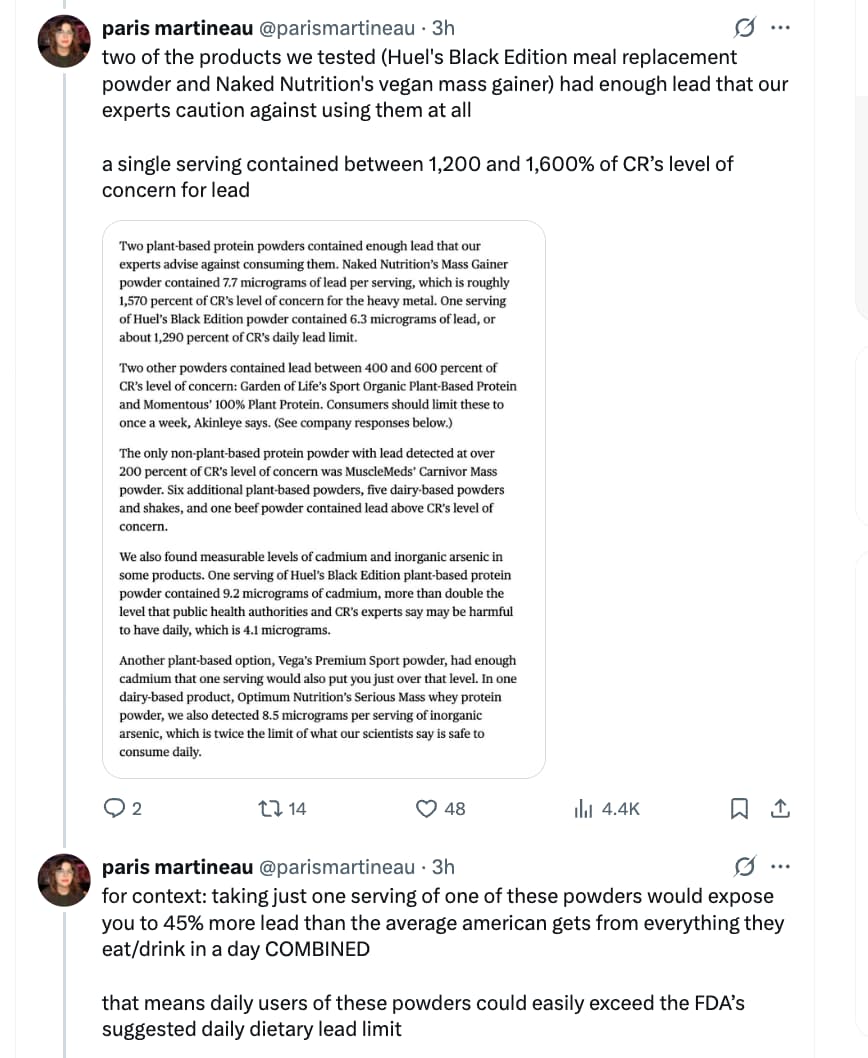 I’m wondering if there is something about the processing or if it’s just a matter of concentration. In other words, is there lead in pea plants? Is there lead in milk? Wouldn’t there have to be for it to get concentrated by these powder producers?