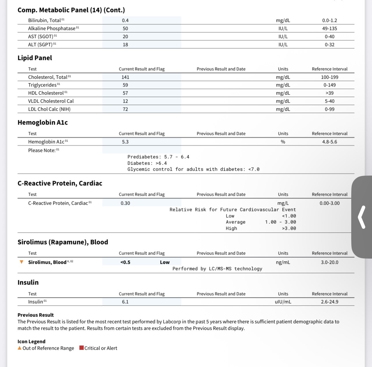 I’ll share my labs when the results are in. I’m actually pretty excited to start having my sirolimus levels monitored and have some professional oversight.