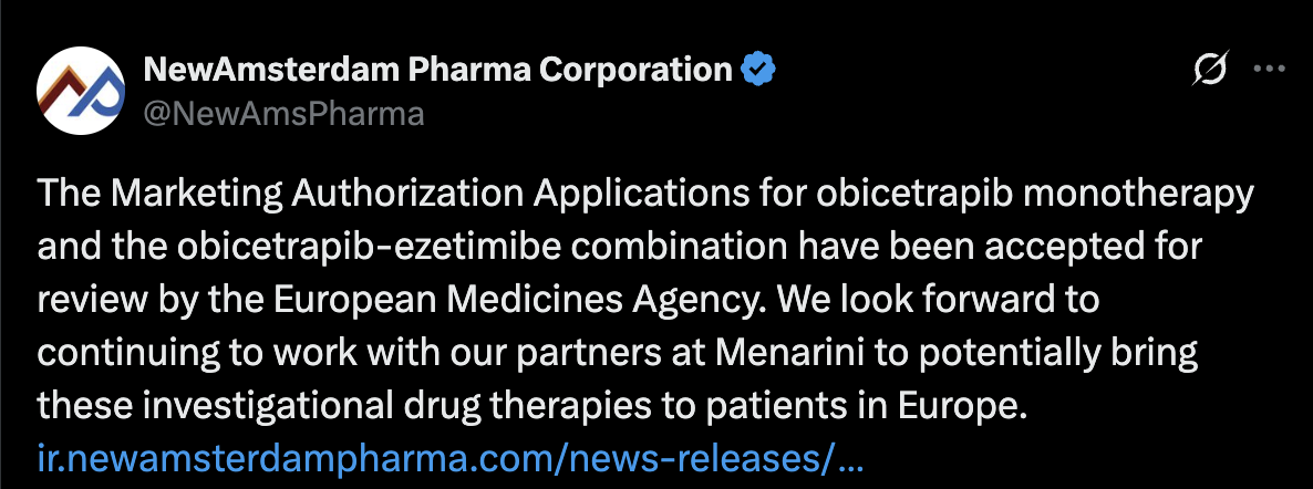 Great news! Assuming a standard review, obicetrapib could become available in the EU in late 2026/early 2027?