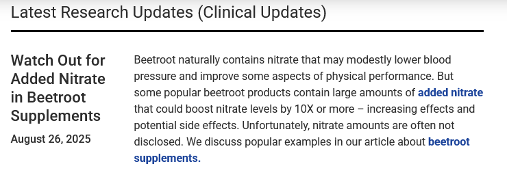 A recent report on ConsumerLabs indicates that many beetroot supplements have been “supplemented” with extremely high levels of nitrate. Which can drop BP way too low.