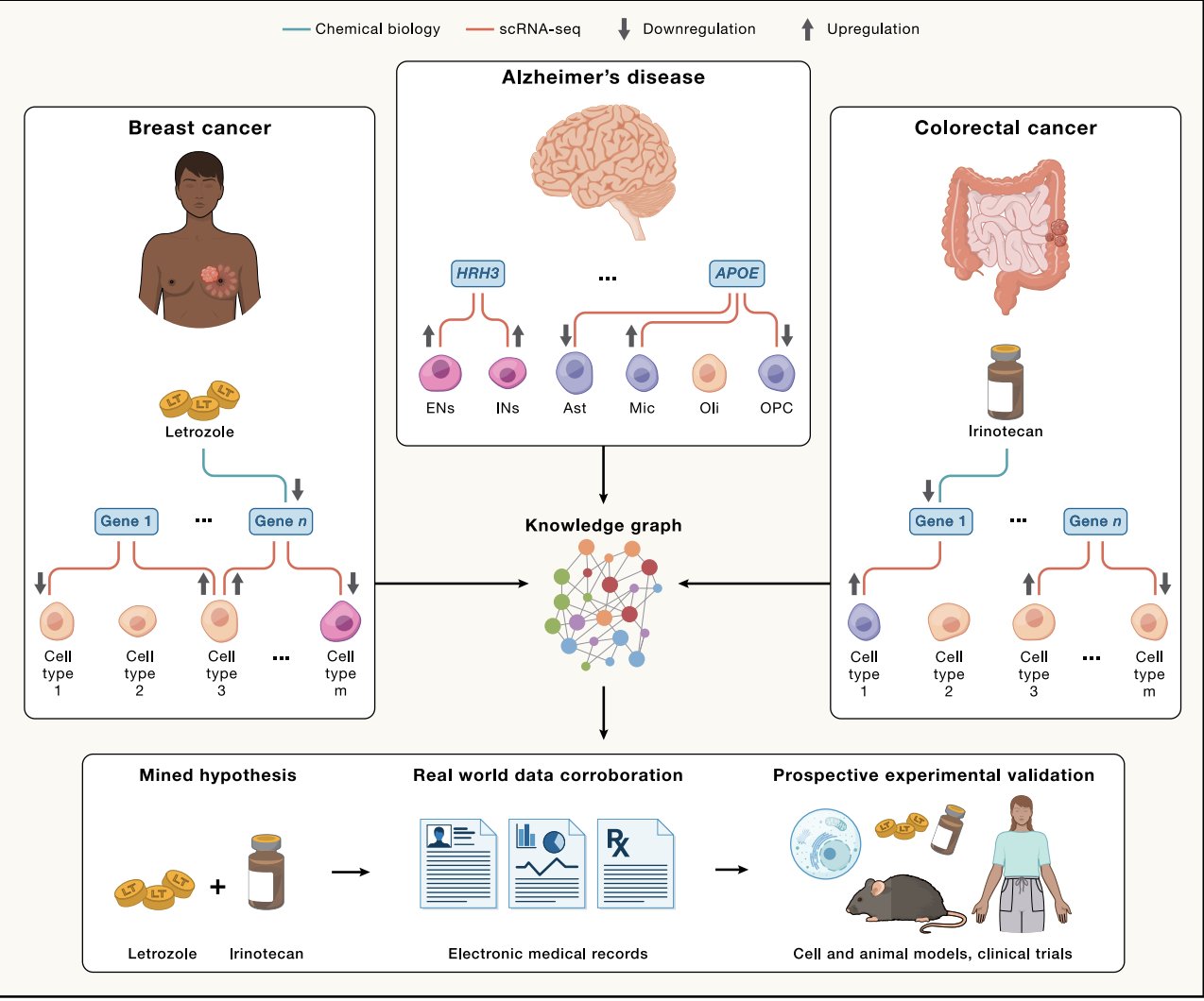 - Researchers built cell-type–specific AD gene-expression “signatures” from single-cell/single-nucleus RNA-seq of human AD brains, then screened drug-perturbation databases (Connectivity Map) to find FDA-approved drugs that reverse these signatures—ideally across multiple brain cell types. Letrozole best countered neuron signatures; irinotecan best countered glial signatures. (Início )