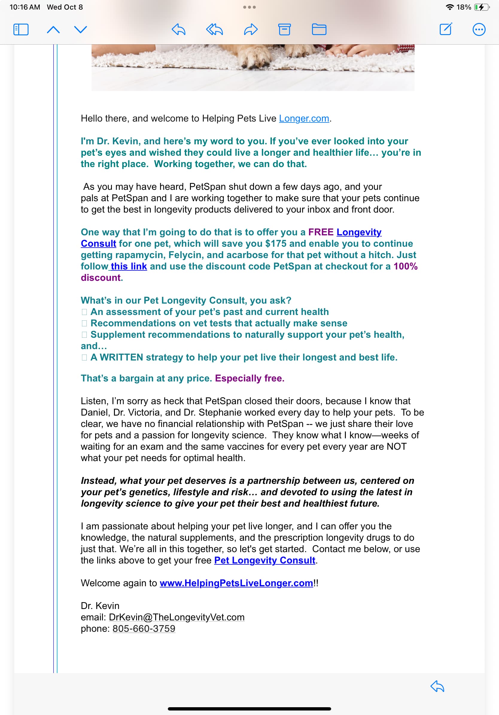 Apparently PetSpan is no more, and Dr Kevin is offering free consults (very smart!)