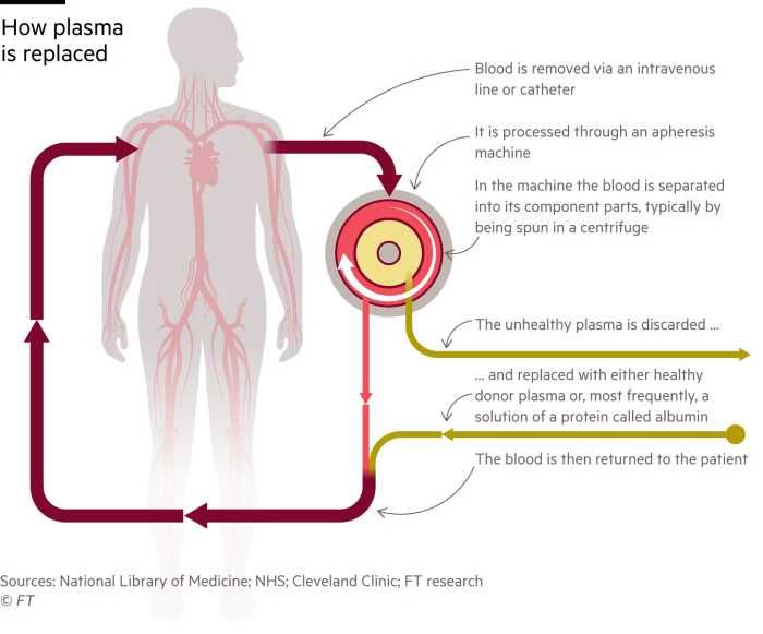 Wyss-Coray thinks that while early efforts to use therapeutic plasma exchange to slow ageing was “without any scientific basis”, this is changing. “Now I think there’s enough scientific evidence that . . . as a physician, if you do this, you don’t even have to feel bad.”