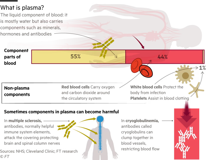 Jörg Schüttrumpf, chief scientific innovation officer of Grifols, said that because plasma was like the “internet of the organs”, carrying substances such as proteins, antibodies and hormones, studying it can be very helpful to gain a wider understanding of the body. “It plays a tremendous role in disease, development, ageing and all kinds of biological processes,” he said.