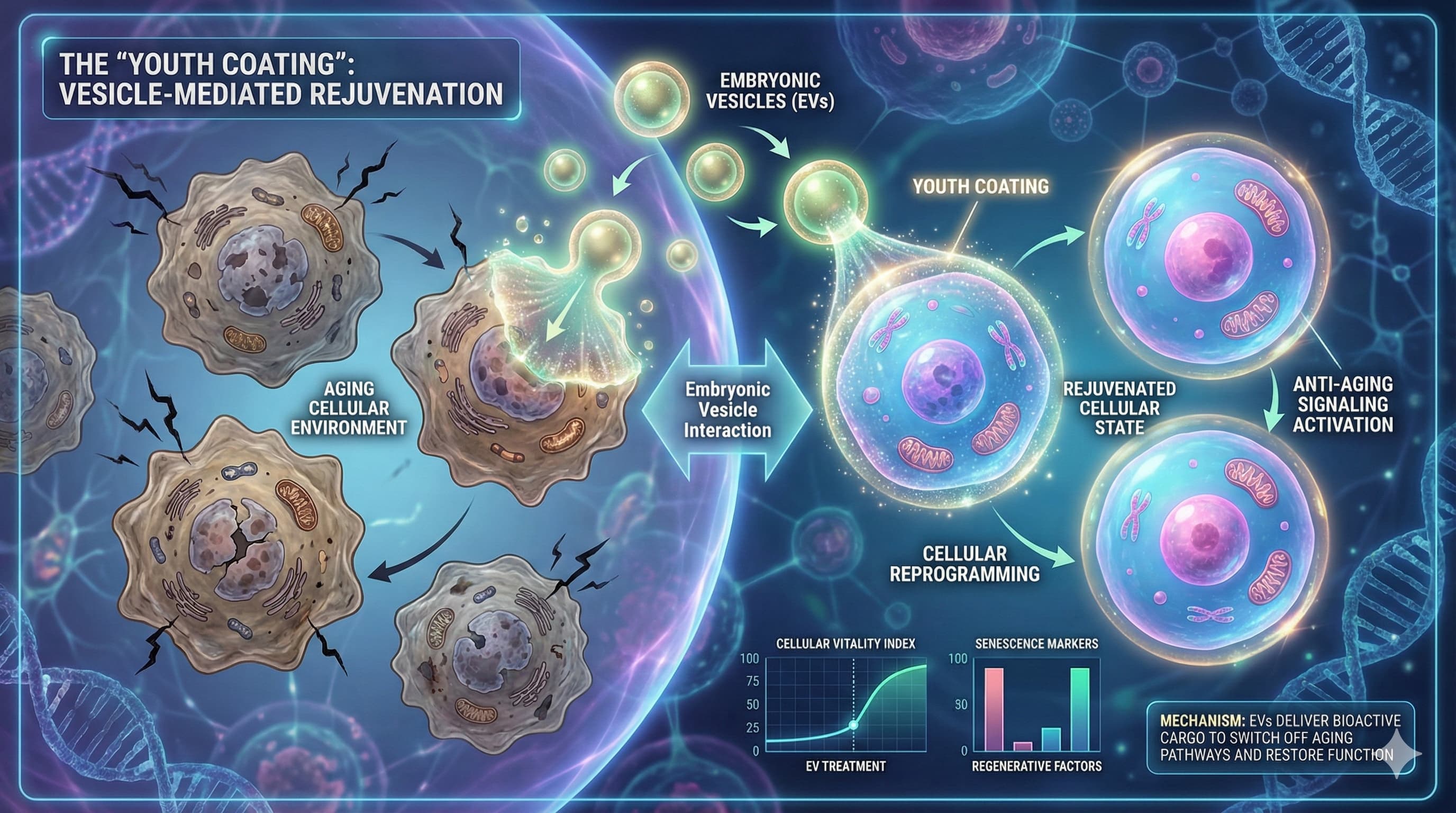 A team of researchers at Cornell University has identified a specific molecular “coating” on the surface of embryonic stem cell-derived (EVs) that appears to be the master switch for their potent anti-aging effects. While the scientific community has long known that “young” EVs can rejuvenate “old” cells, the precise mechanism has remained a “black box”—until now.