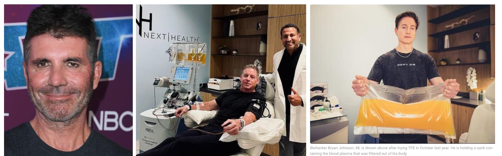 - Bryan Johnson: Biohacking entrepreneur who underwent total plasma exchange to remove toxins, claiming his plasma was exceptionally clean; part of his regimen to reverse biological aging.